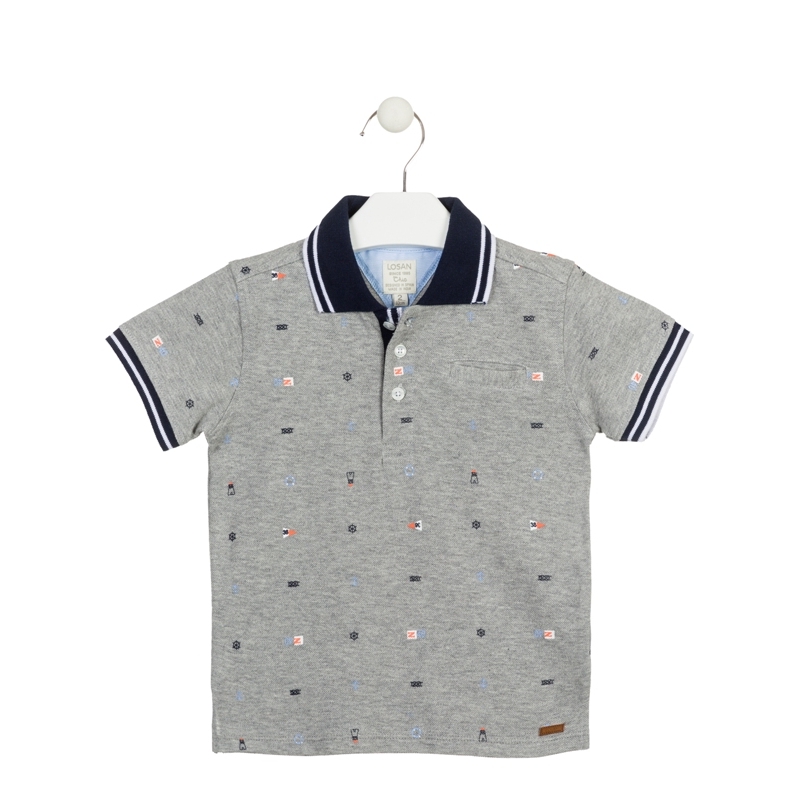 Βαμβακερό polo μπλουζάκι με μικρά σχέδια στο μπροστινό μέρος για αγόρι.