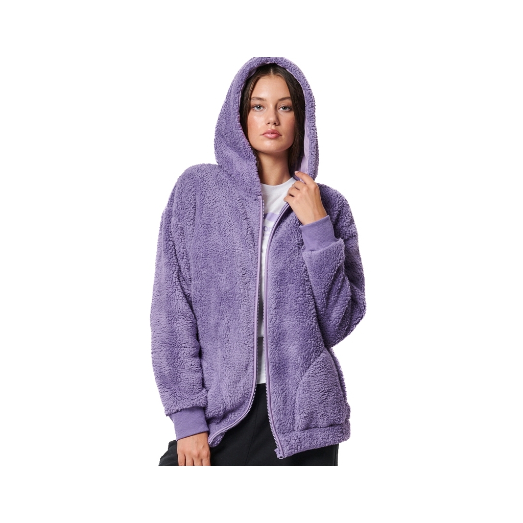 Γυναικεία oversized sherpa ζακέτα με φερμουάρ και κουκούλα.